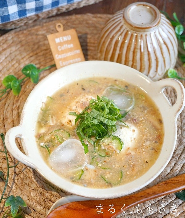 暑くなってくると、冷や汁が食べたくなってきます^^本来はアジの干し物で作るけれど、さば缶を使うとパパっと作れるので便利ですね。さば缶で魚の風味と出汁、薬味の生姜・ミョウガ・青シソそしてきゅうりとすり胡麻を入れた冷たい冷や汁。木綿豆腐をスプーンですくい入れ ...