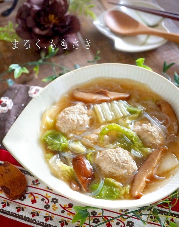 刻み生姜入り♪ふんわり柔らか~豚団子の白菜と春雨の中華スープ