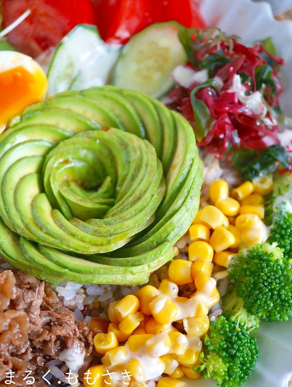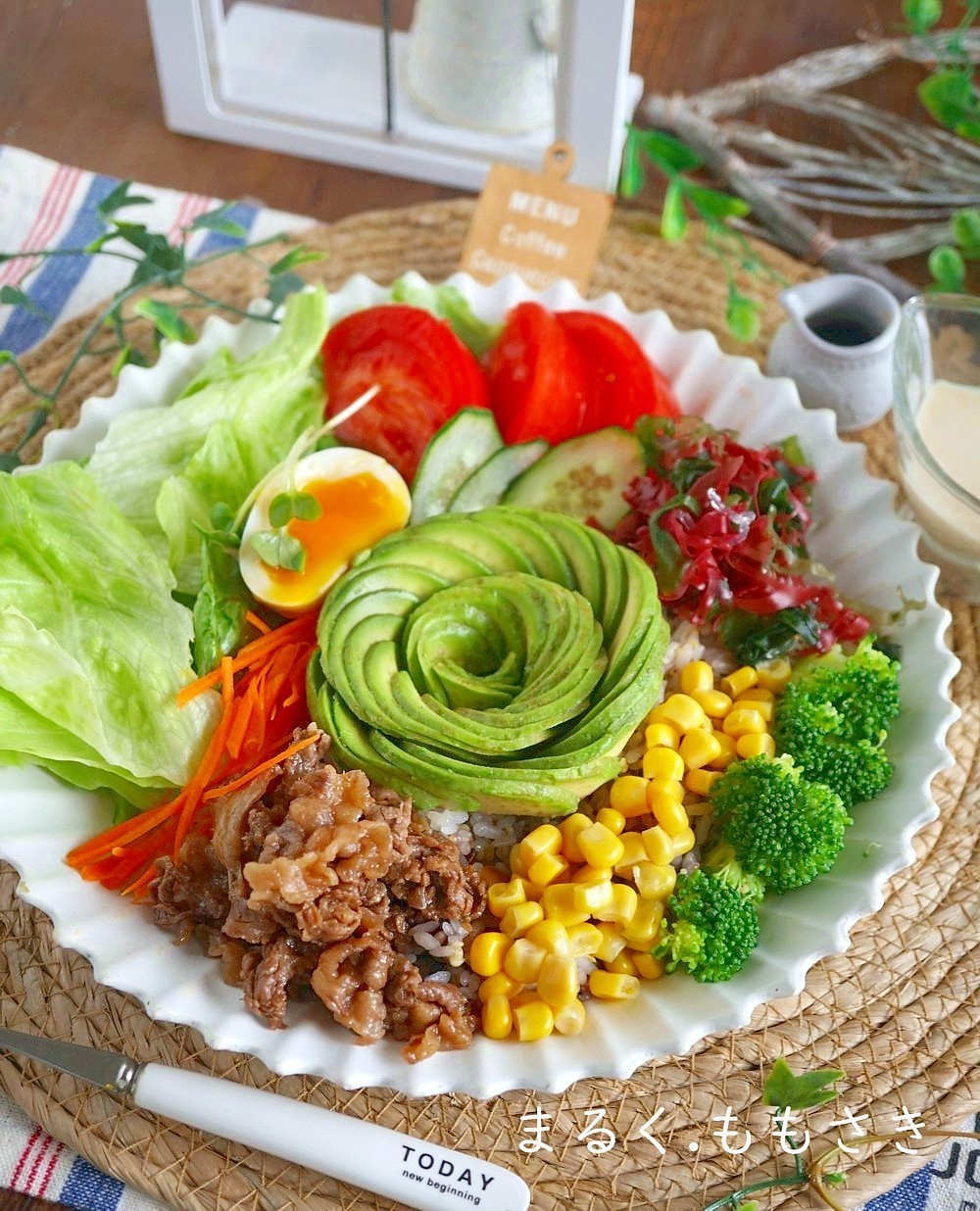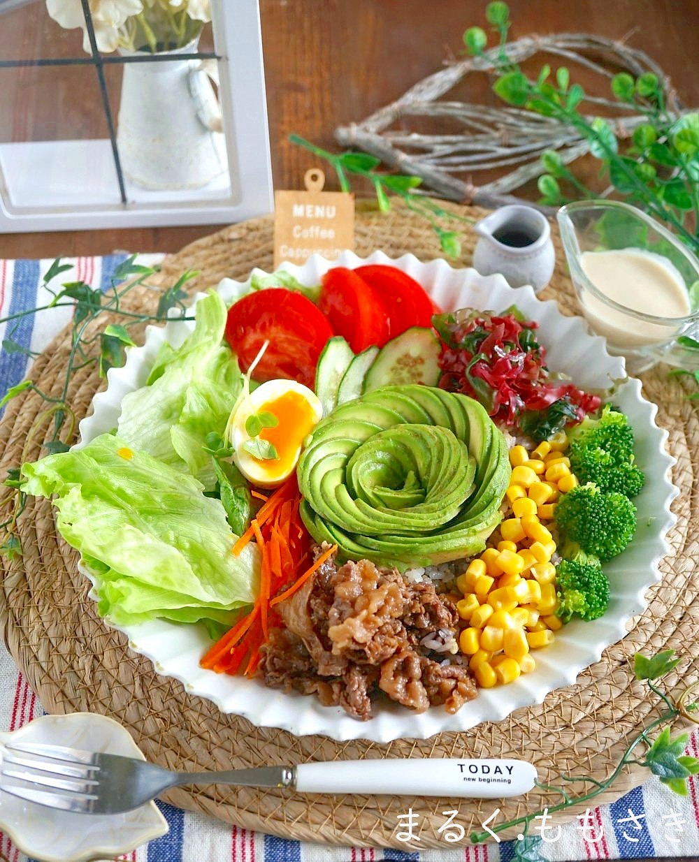 サラダ御飯、ウチでも作ることあるんだけど、こんな綺麗な盛り付けじゃない~(^o^;)