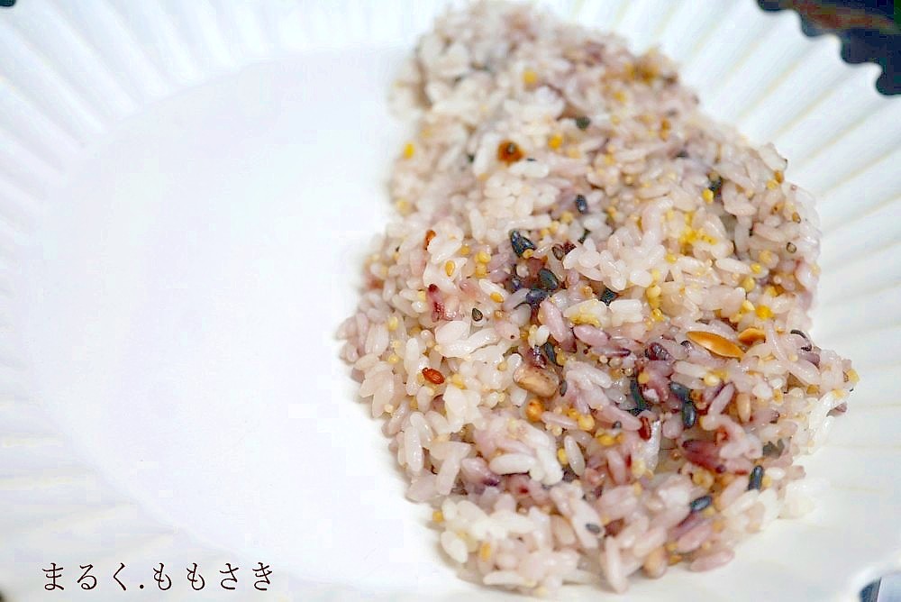 器に雑穀米を乗せ、野菜を適当に置き塩を適量振る。