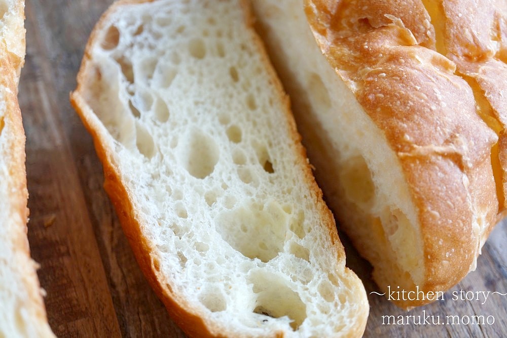 先日、近くのスーパーでお買い得品で見つけたバケットを買ってきて食べたら美味しく、最近のお気に入りパンです。普通のバケットもいいけどこちらは、バターが香るソフトバケット。期限が過ぎていても柔らかく味が濃厚だったんです