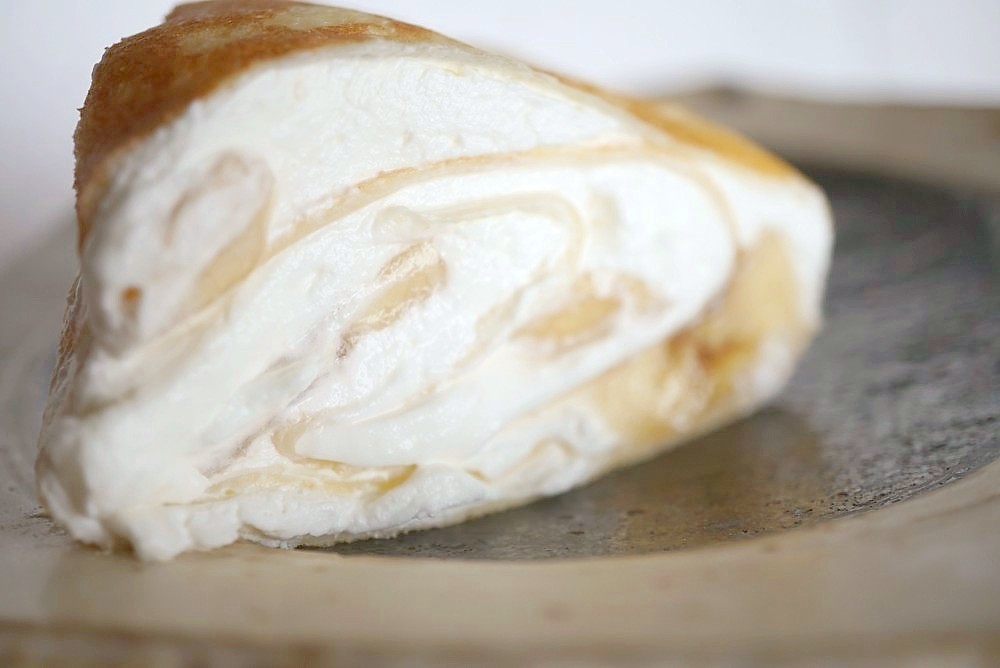それでバナナをスライスしてクレープで巻いていくと、バナナ入りミルクレープぽいのが出来るのでは?と作ってみました。自家製生クリームならたっぷり入れられ、美味しいです