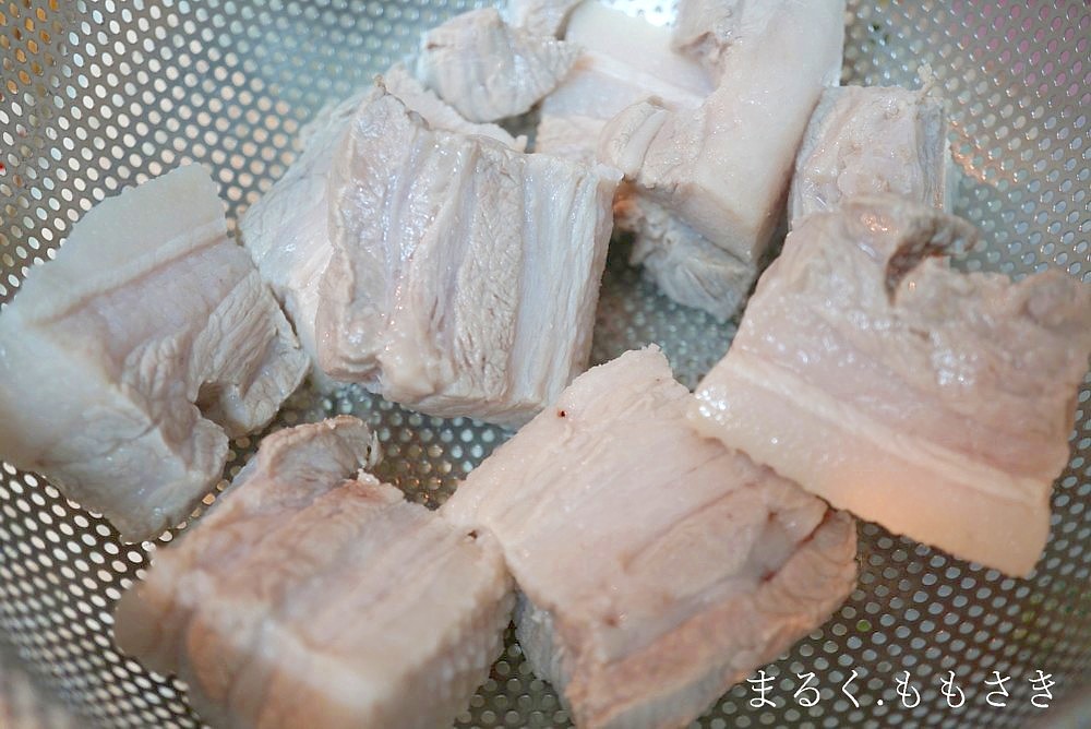 私はその時により、豚ばら肉の塊や豚肩ロースの塊で作ったりします。