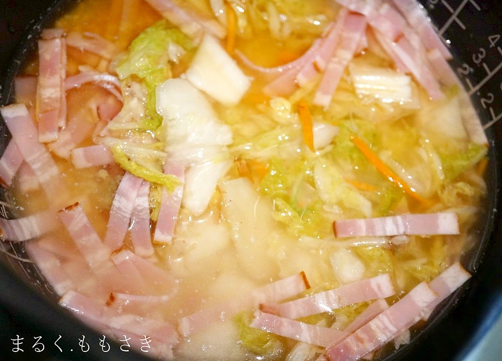 ※ベーコンなど材料により味が足りなければ塩で調整してください