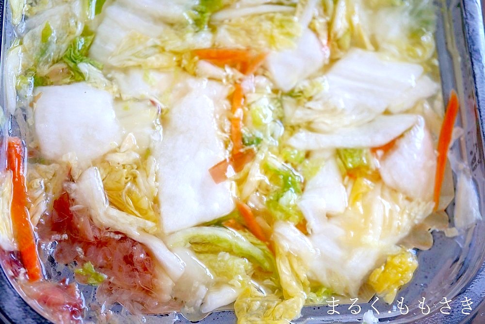今回はこちらの、東海漬物様の『白だし仕立ての割烹白菜漬』を使いました。