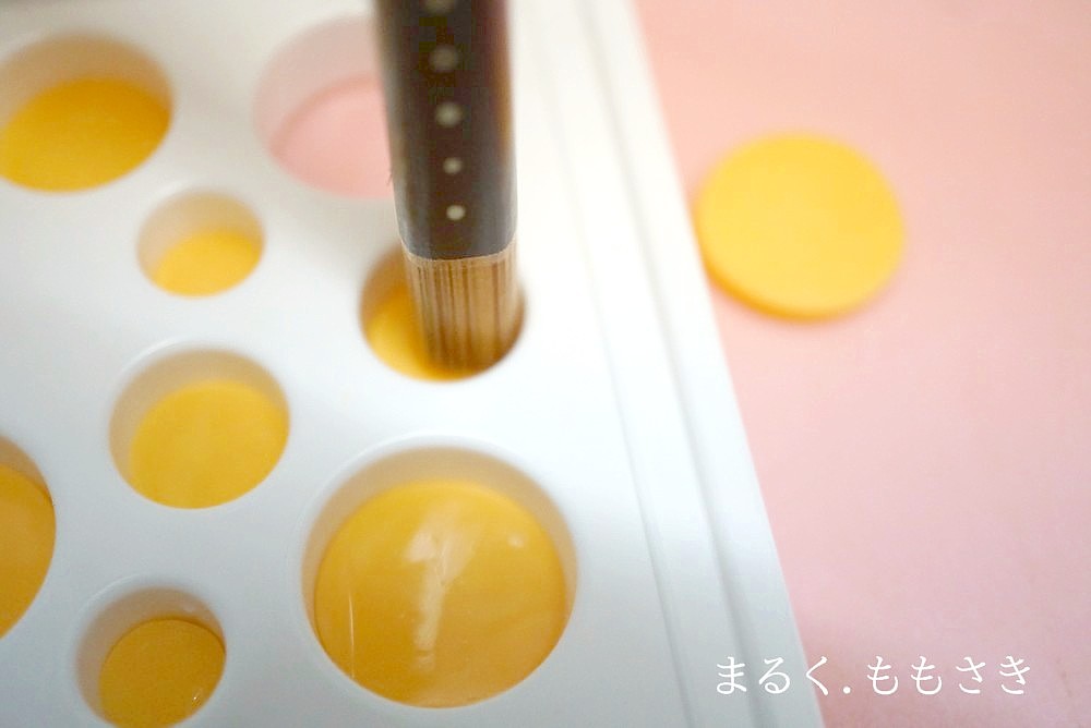 裏面に型の跡が全体に付いているのを確認したら、穴からお箸の底で押し出します。