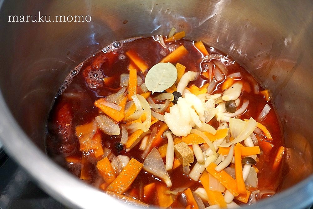 トマト缶を使用した赤ワイン煮