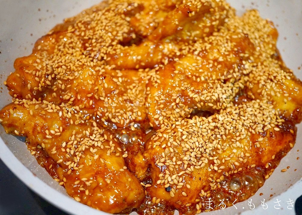 チキンの甘辛味、白ごま合いますよね~~