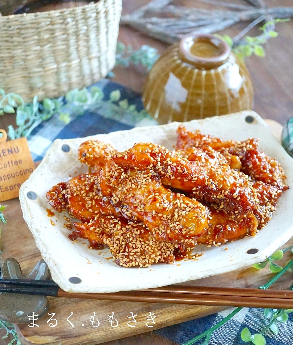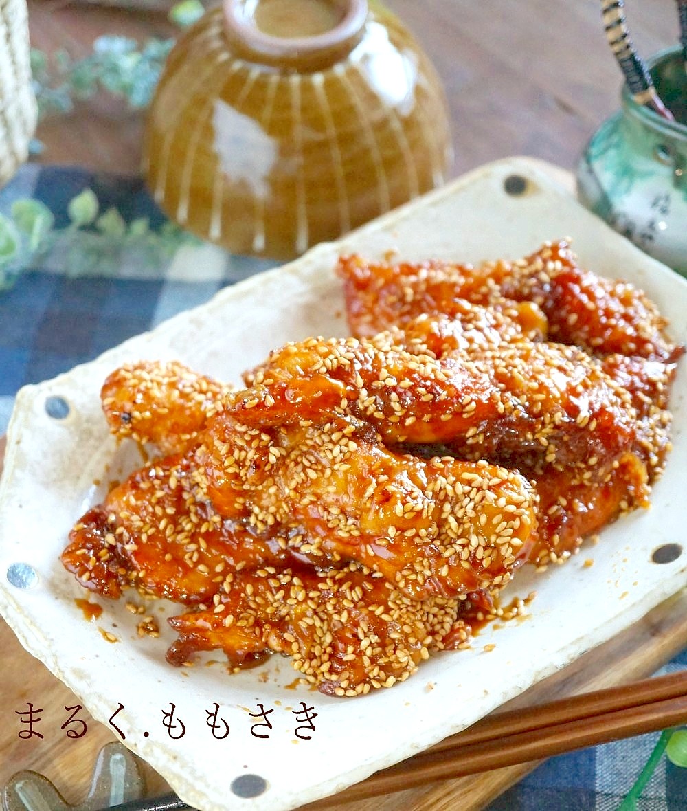 クックパッドでも1000件以上のつくれぽがありますが写真も古く💦いつもブログでのリンク先を載せる時に気になっていたので^^:今年の甘辛味チキンスティックを作りました。初期より今は作りやすい手順に変え配合も少し変えています。むね肉の苦手な方も食べれるようになったとか家族全員大好きだとリピしてくださる方もたくさん