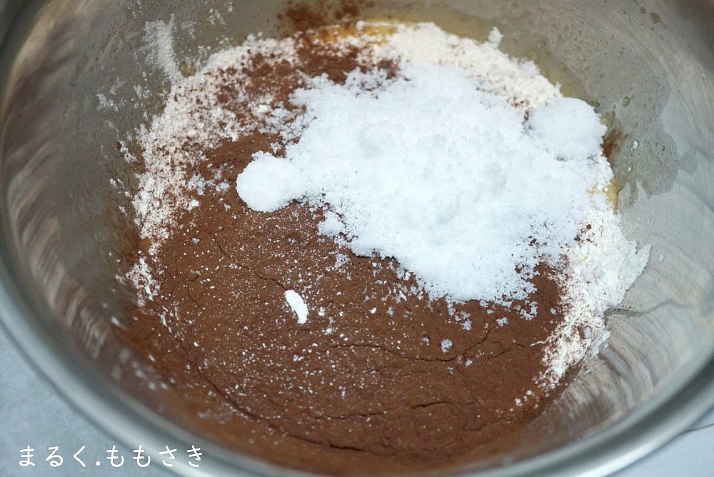 砂糖、純ココア、卵、バター、