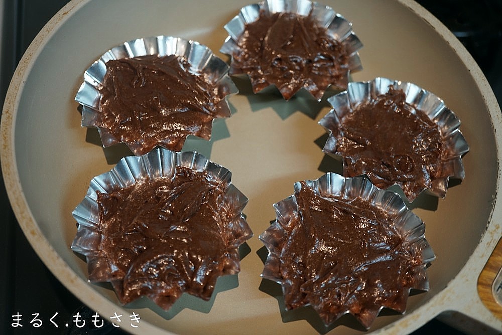 ホットケーキミックスを使うので簡単。また生地にココアを一般的より多めに入れるので濃厚です。