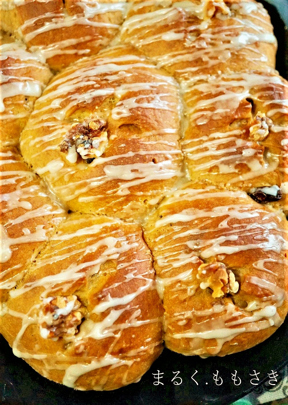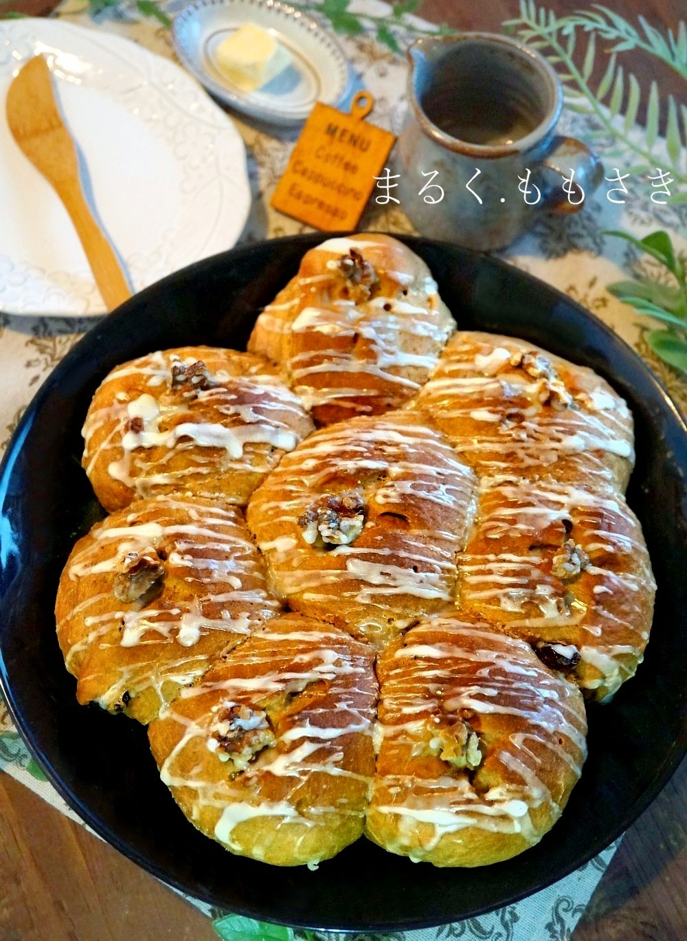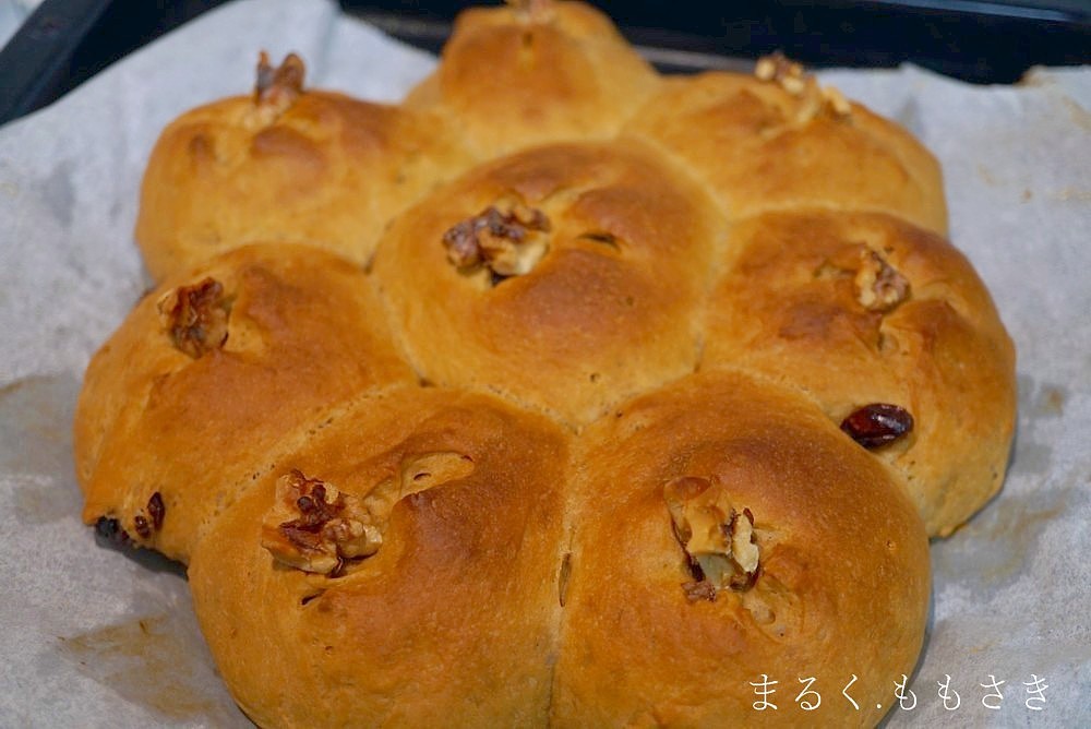 久しぶりにコーヒーとレーズンのちぎりパンを焼きました!発酵はフライパンでして、オーブンで15分焼くだけ。