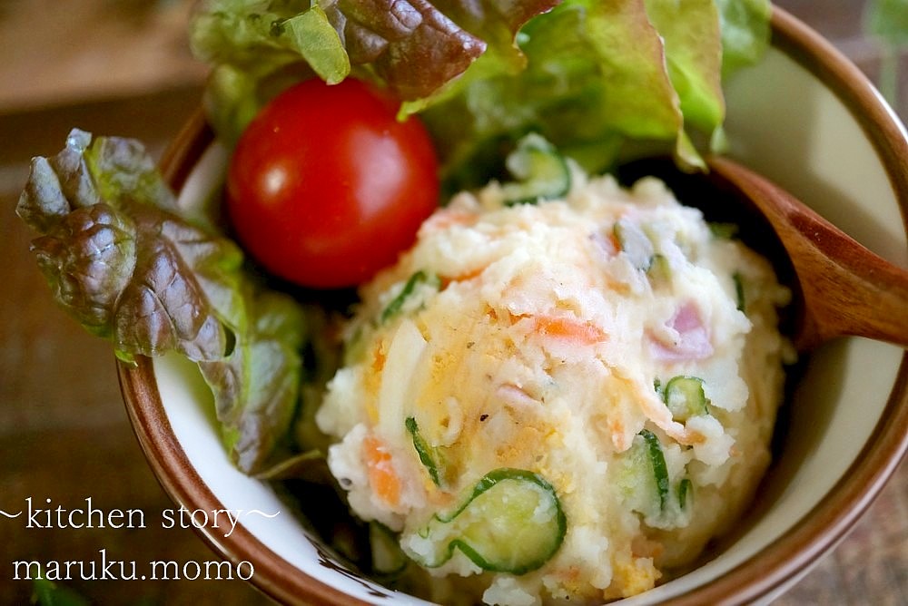 添えたのは我が家じゃがいも1㎏で作るポテトサラダです。レシピはこちら⇒★