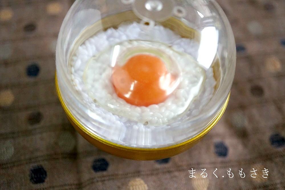 これ父と母と最後にマンションに来てくれた日に行った我が家の近くのドンキで、私が欲しくて眺めていたガチャガチャ(笑)カプセルがお椀になっています。座り込んでいたら母が欲しいんか?と言ってお財布から300円渡してくれ回したもの(笑)子供時代欲しがったりしない子だったので、大人になりこんなものを買ってもらいました^^;黄金色の黄身がお高い卵を使ったご飯なんだろうなぁ