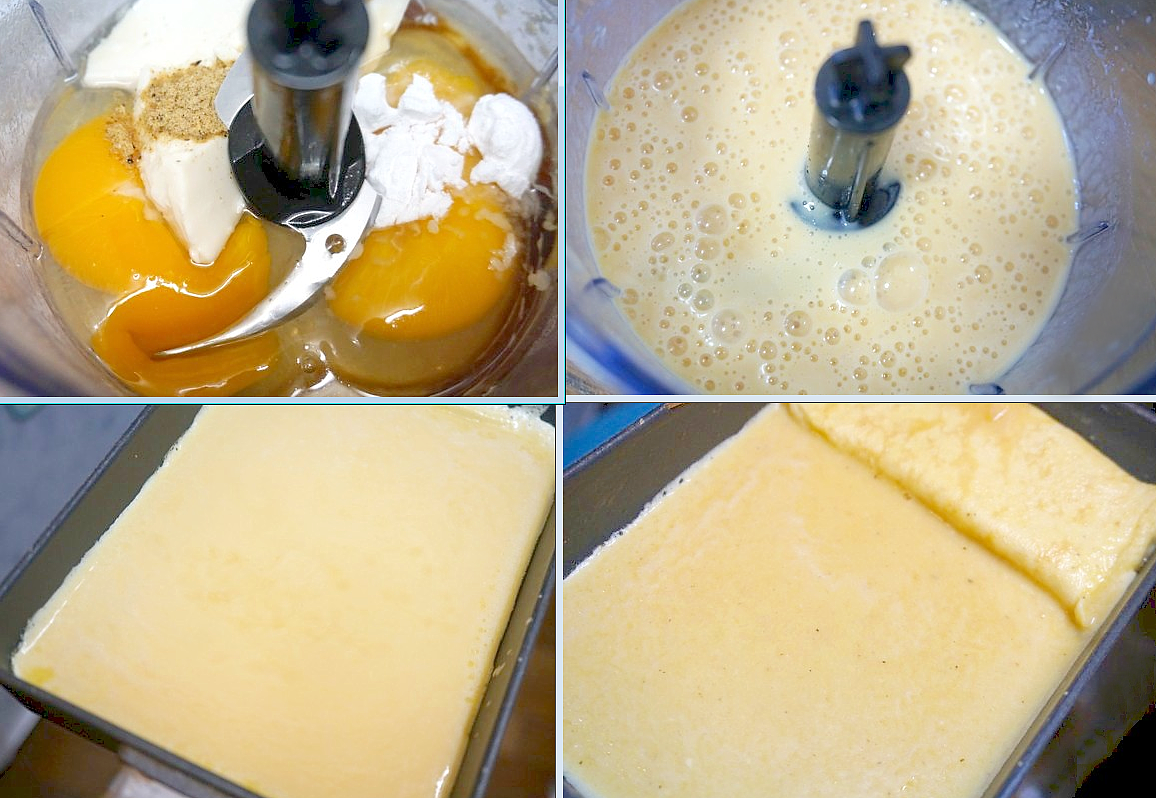 お豆腐の水切りをしないので、卵に水分が入り、柔らかく焼きがります。麺つゆと、お好み焼きに使う、カツオ粉をプラスしてお出汁の香りをプラスしています