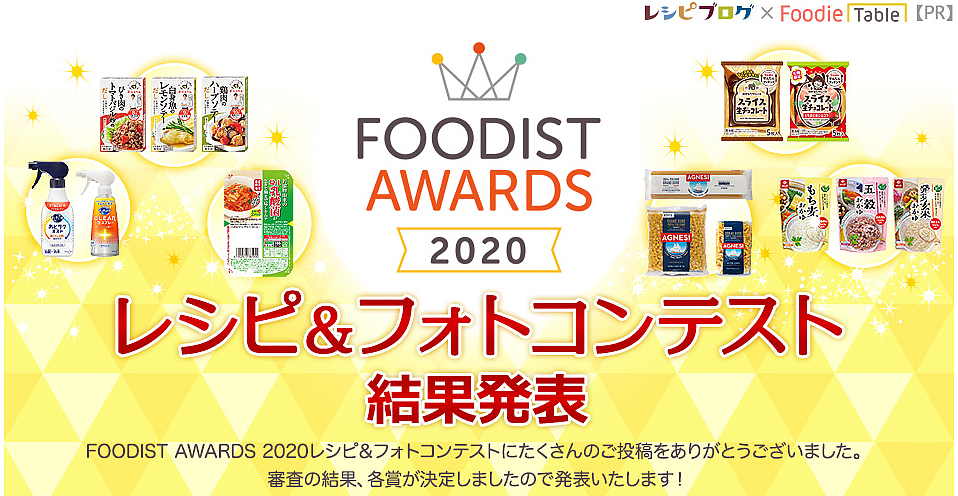 1年に1度のレシピブログさんの、フーディストアワード2020年のレシピコンテスト。