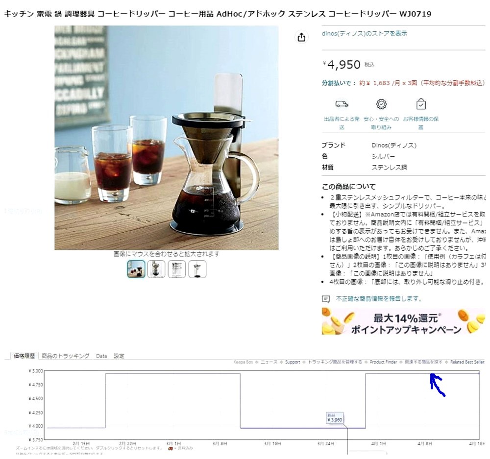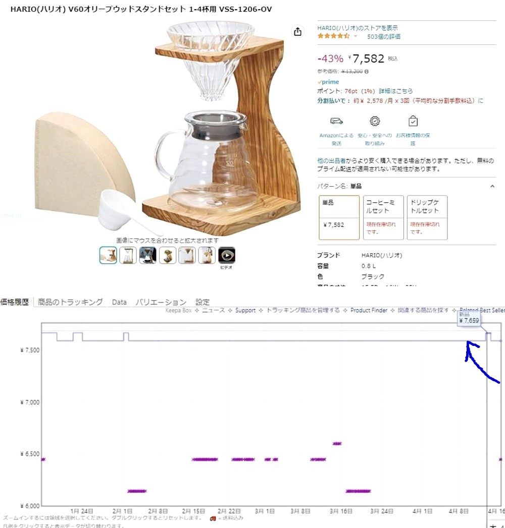 Amazonの価格の推移が見られるのは嬉しいですね~。