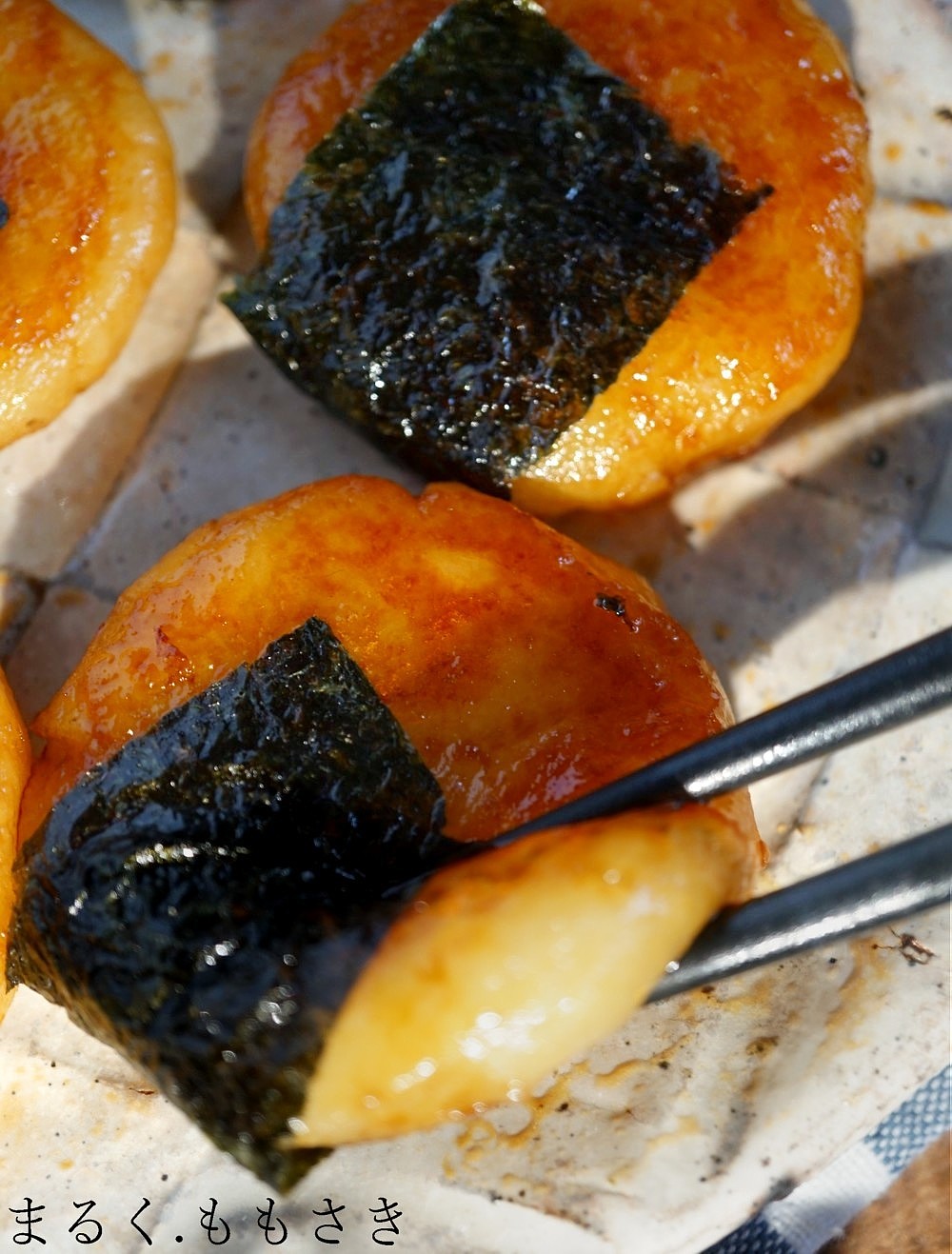 仕上げの甘辛味と海苔で食べたら、磯辺焼きのお餅か?と間違えるほど^^