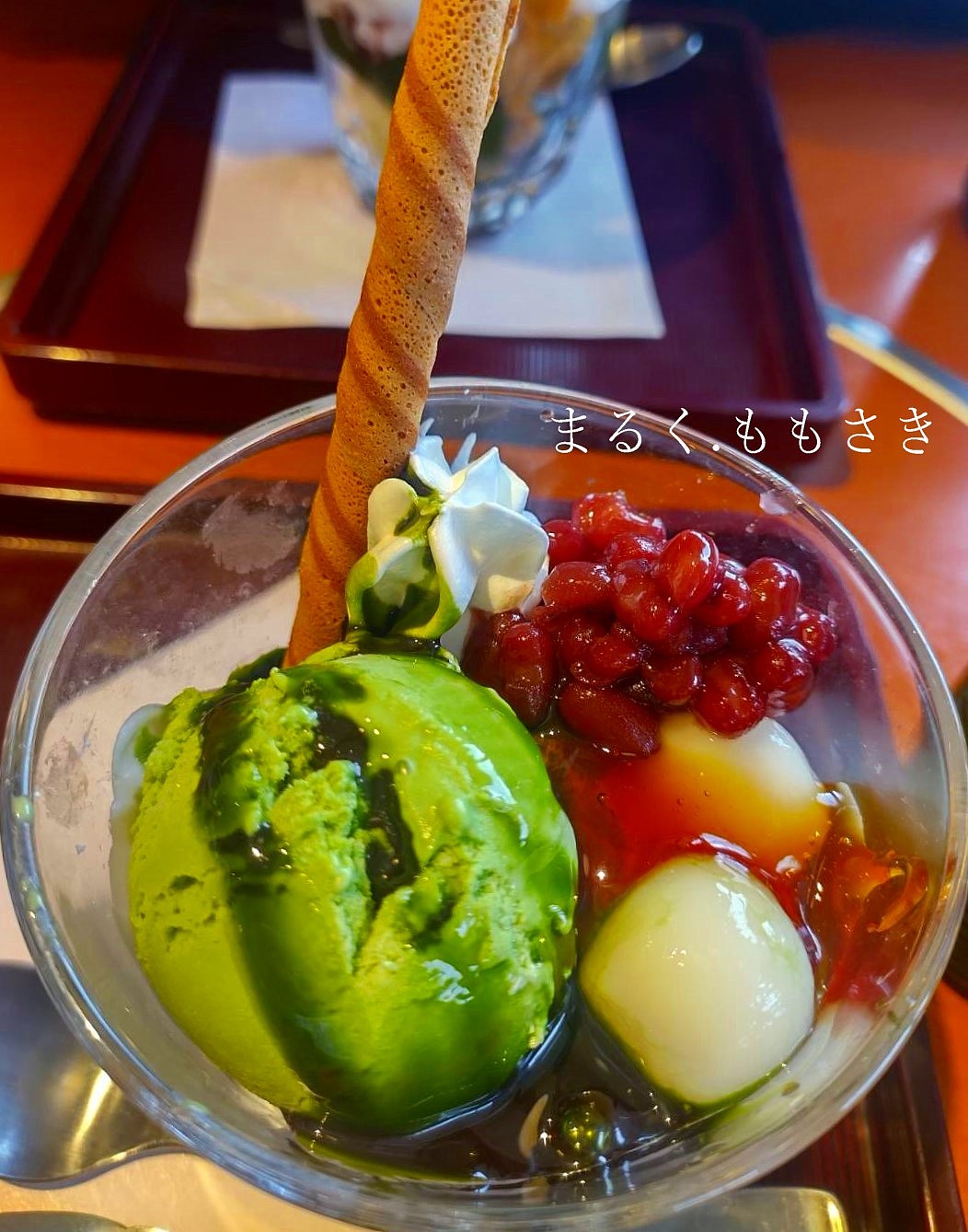 みたらし白玉が入った宇治抹茶のパフェです。小豆に濃い抹茶ソースにアイスがまた美味しい~
