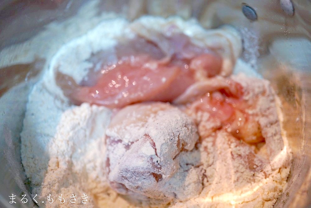 中に下味たれと揚げる時のまぶし粉が付いています。