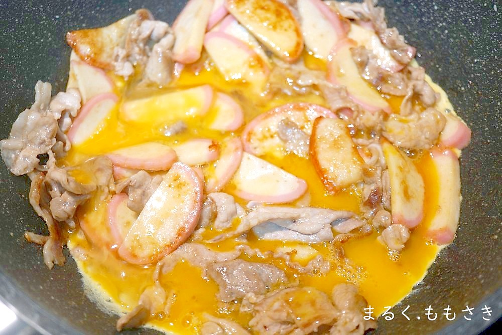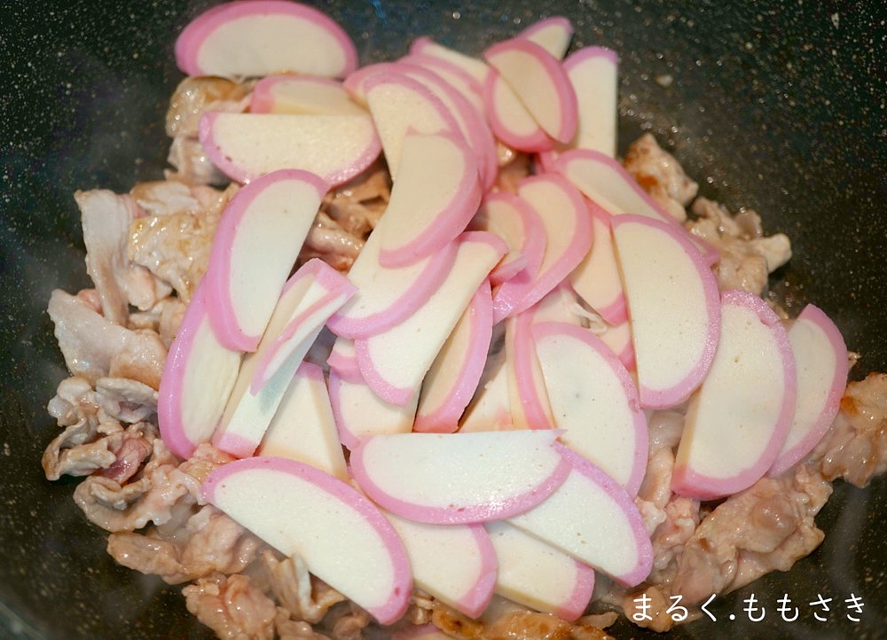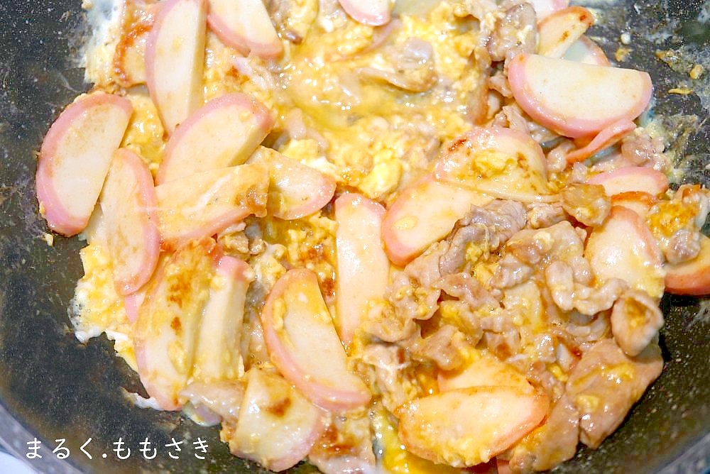 先月ドラッグストアでかまぼこが半額だったので2枚買いました。予定していたおうどんを作らなかったので何かに使えないかなと?思い豚肉と卵で炒めたら美味しく家族も大のお気に入りになりました。
