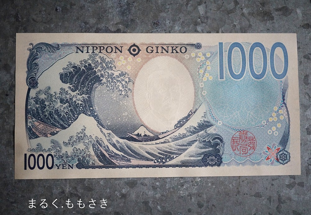 裏面は江戸時代の浮世絵師・葛飾北斎の代表作である「富嶽三十六景・神奈川沖浪裏」