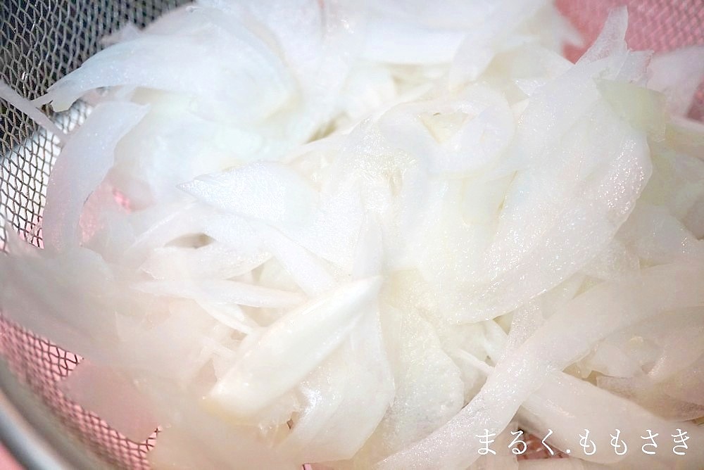 こちら写真を撮ったのが今年の3月。記事に出そうと思ったら、まだ寒かったので夏に出そうと思っているうちに夏も終わりに近づきました(笑)なので新玉ねぎを使っていますが、無い場合は紫玉ねぎを使ったり、普通の玉ねぎを水にさらし使って下さい。