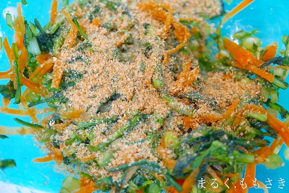ゴマはいつもたっぷりかけます^^すり胡麻を使っているので、和えた瞬間から香ばしいゴマの香りがします♪