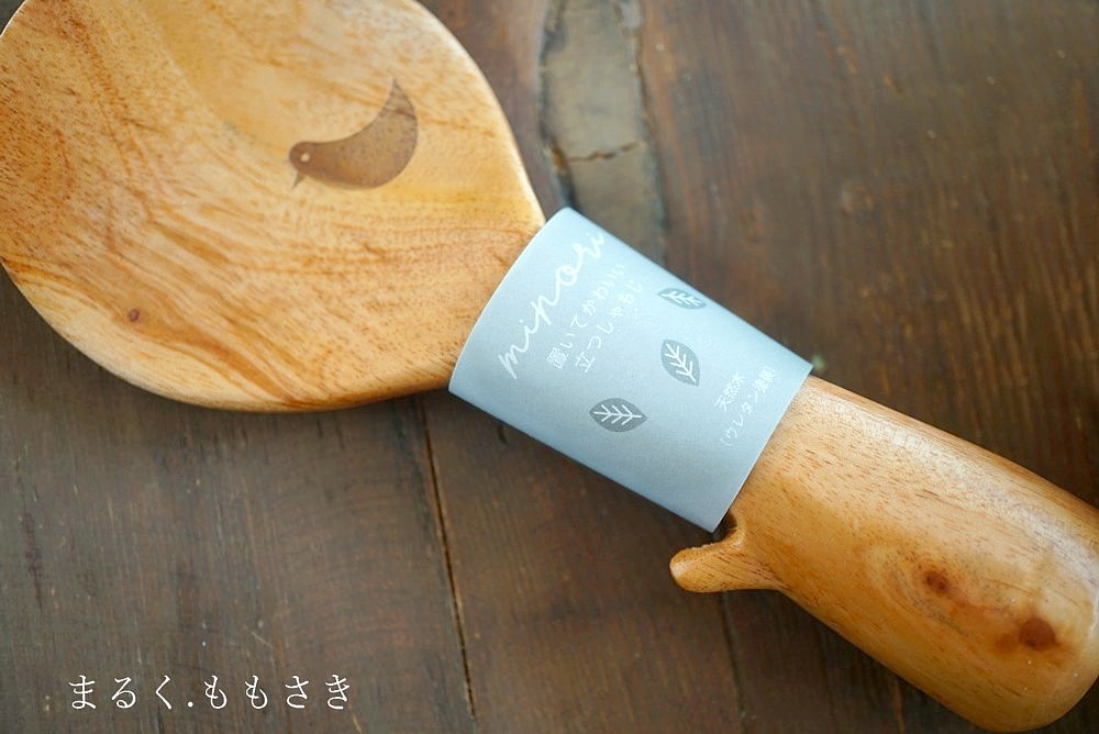そして立つしゃもじ。これ木の食感。枝が付いている演出?鳥の絵。すべて気に入りました