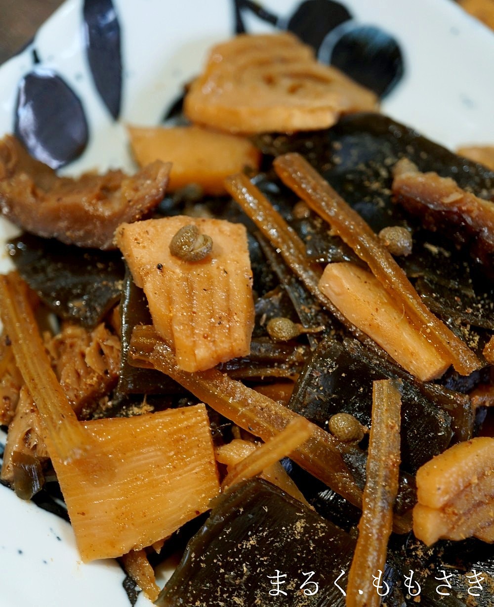 何度か昆布の佃煮は出しています、定期的に作る我が家の佃煮と言うより、もはや昆布のおかずと言っても過言ではない。市販の濃い佃煮の味では無いので昆布をバクバク食べれます♪家族も大好きで母も持って行くのを楽しみにしていました。山蕗を入れると美味しいですが、季節で無い時に『普通の蕗』を入れたら香りがとてもよく、これで十分だと我が家は普通の蕗を使います。