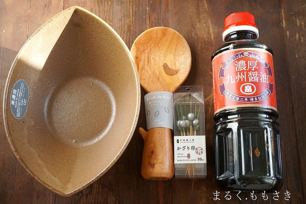 やはり九州醤油は有名なので買ってみました。かざり串の緑と銀色。美濃焼の器。