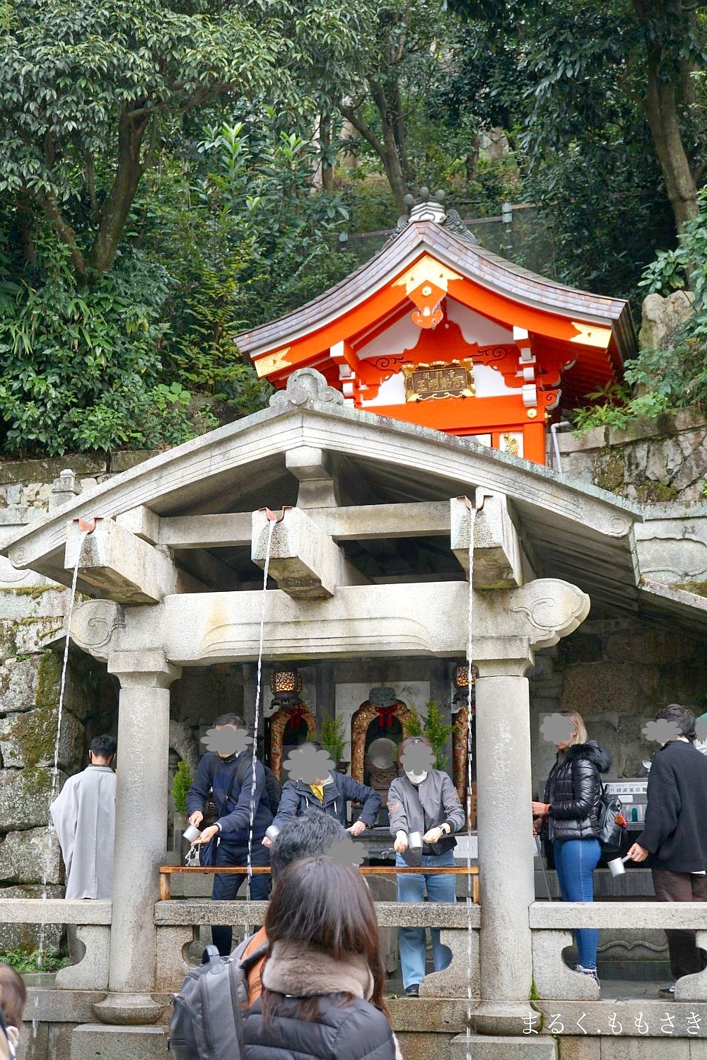滝に向かって左の筧に学問成就、中央の筧に恋愛成就、右の筧に延命長寿のご利益があると言われています。3本から1本を選び、一口だけ飲みます。全部揃ってる私は並ばなかったわ(←爆)大嘘