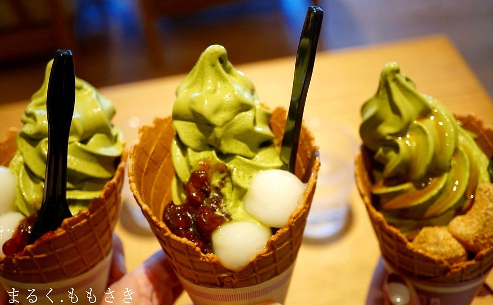 抹茶あずき白玉ソフト、抹茶きなこわらび餅ソフト各649円です。めちゃ抹茶が濃くて美味しかったです