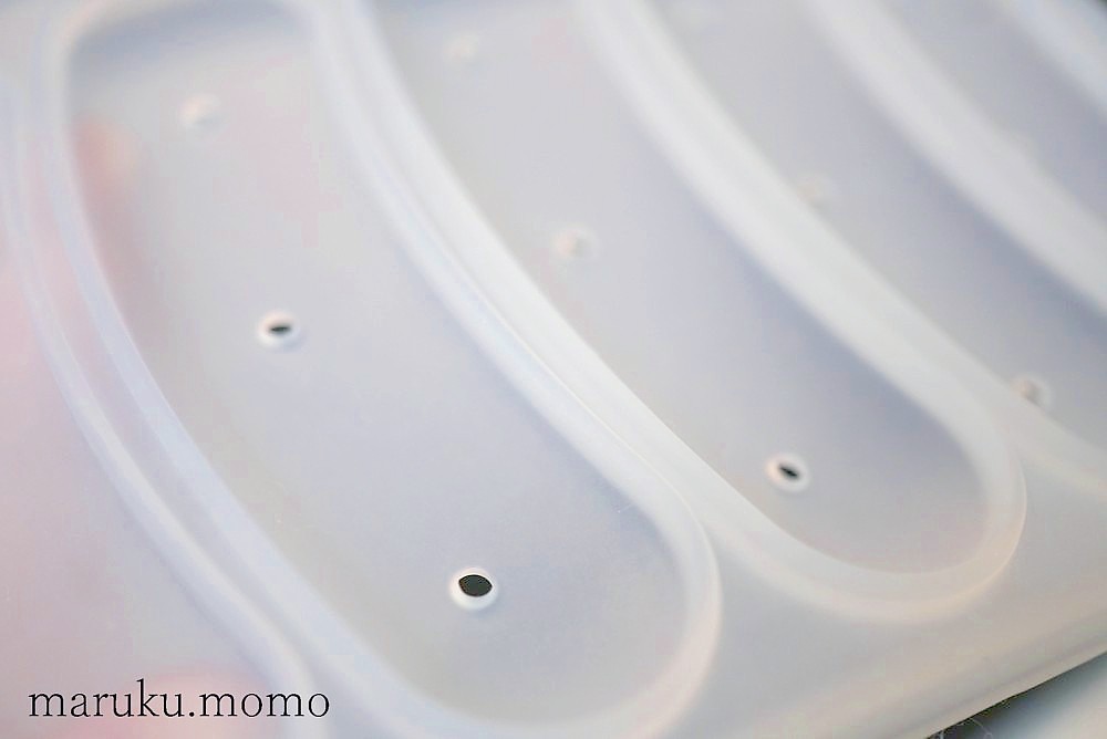 蓋部分は少しふくらみがありくっつき防止にもなっていますね。蒸しながら小さな穴で余分な蒸気を出してくれる役目もあるのですね。