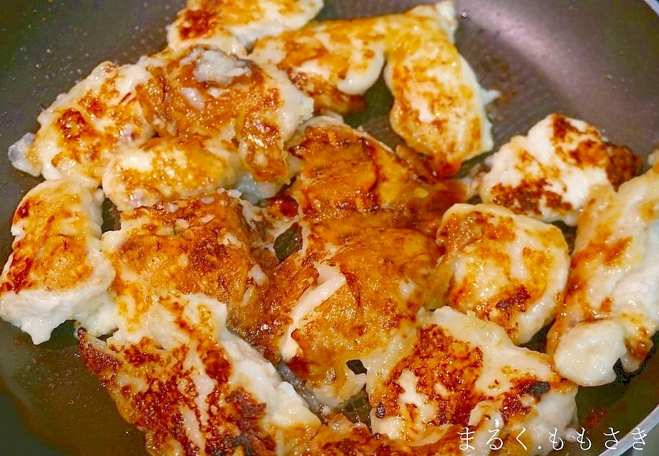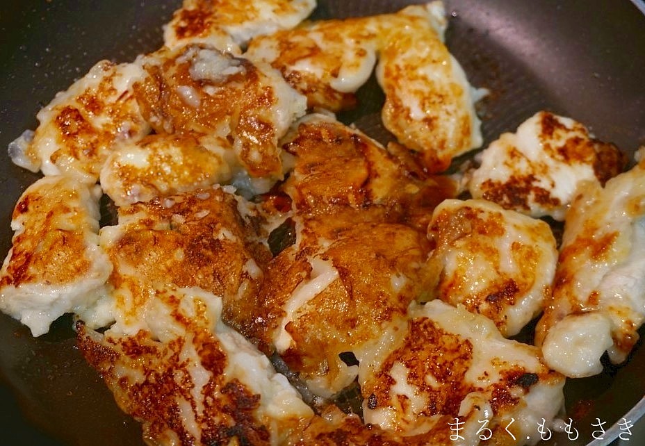 片栗粉の衣でカリッとしていて、蒸し焼きになった部分の片栗粉はもっちりになります