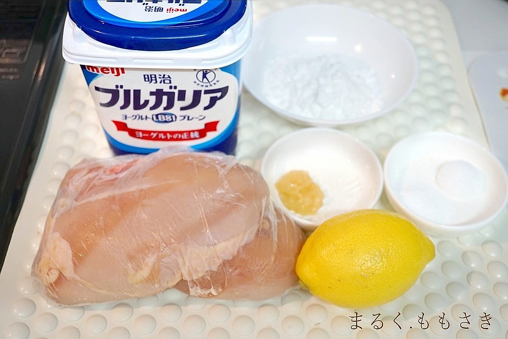鶏むね肉を使って、レモンヨーグルトチキンを作りました。
