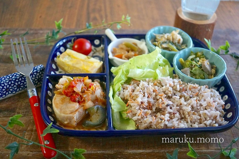 揚げ物ばかりの濃いお弁当とは違って栄養を考えられている新しいスタイルですね^^
