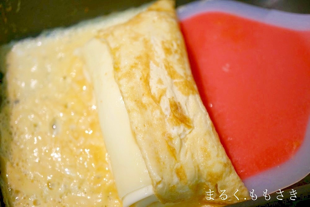 先にチーズで巻いてから卵で包めばいい感じに仕上がるのねぇ。
