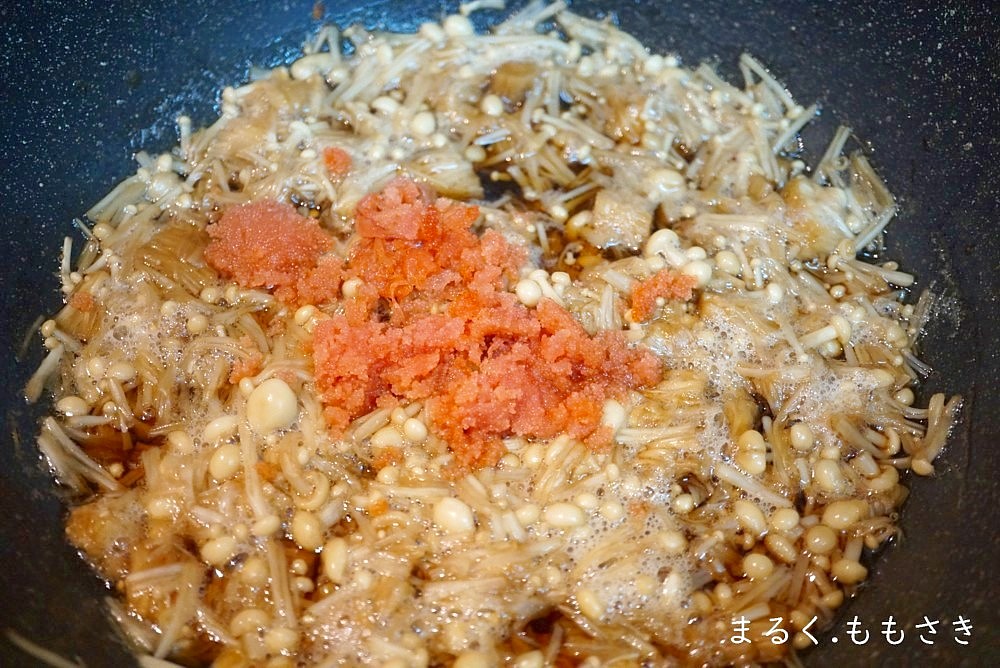 娘が買ってきていたえのきだけが古くなりそうだったので、独身時代はよく作っていたなめ茸でも作ろうかなと?家に1切れ残っていた明太子も入れ明太なめ茸を作りました♪