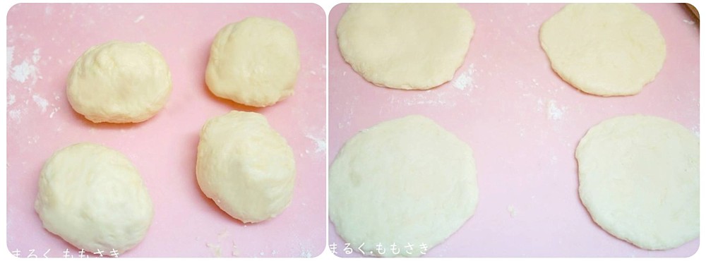 こちらは時短用のパン生地なのでイーストでは無く、ベーキングパウダーを使うので発酵無しで作れるのがいい♪