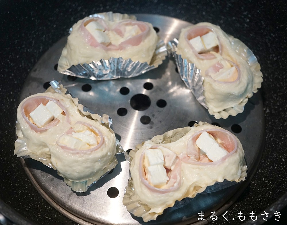ハムとクリームチーズの蒸しパン