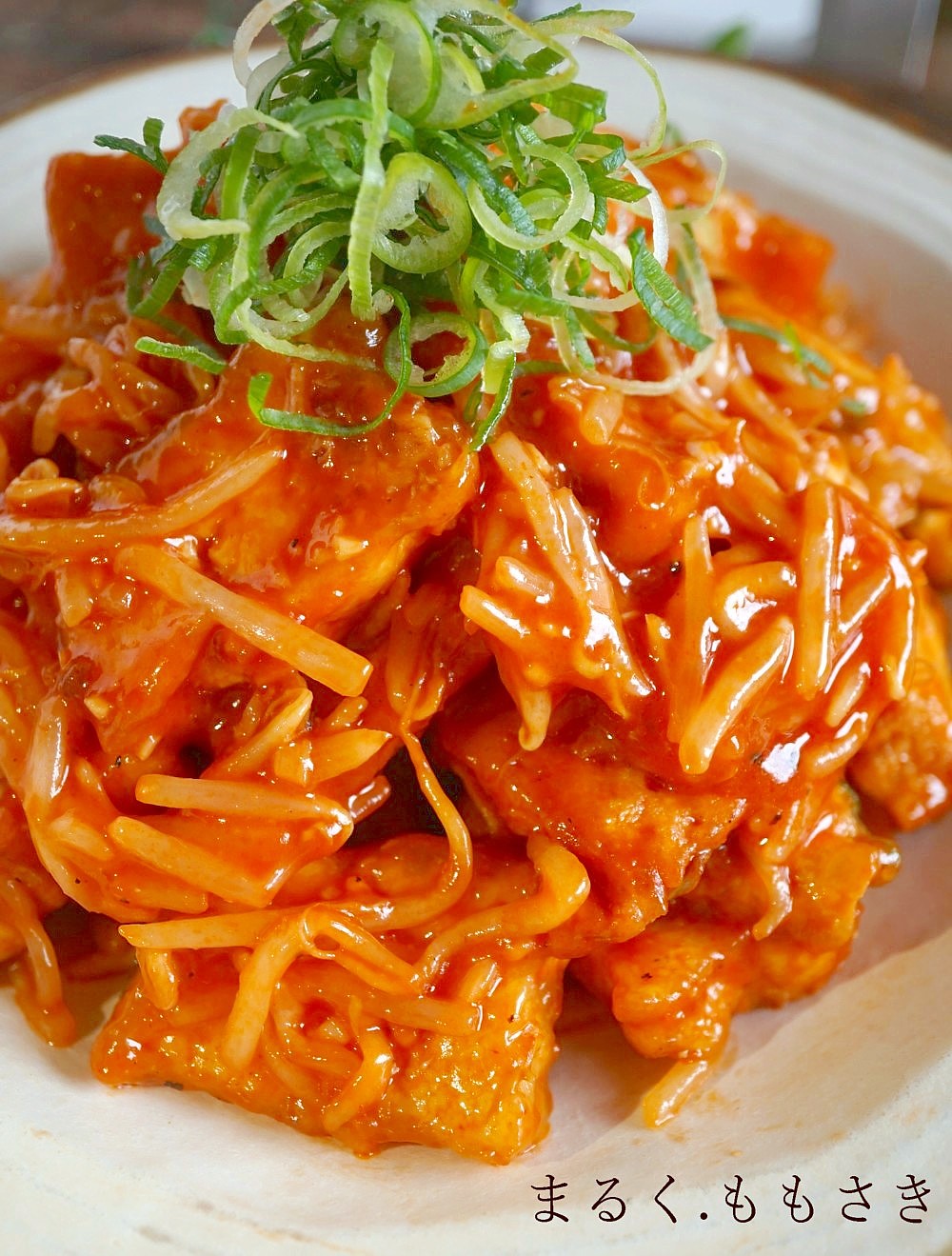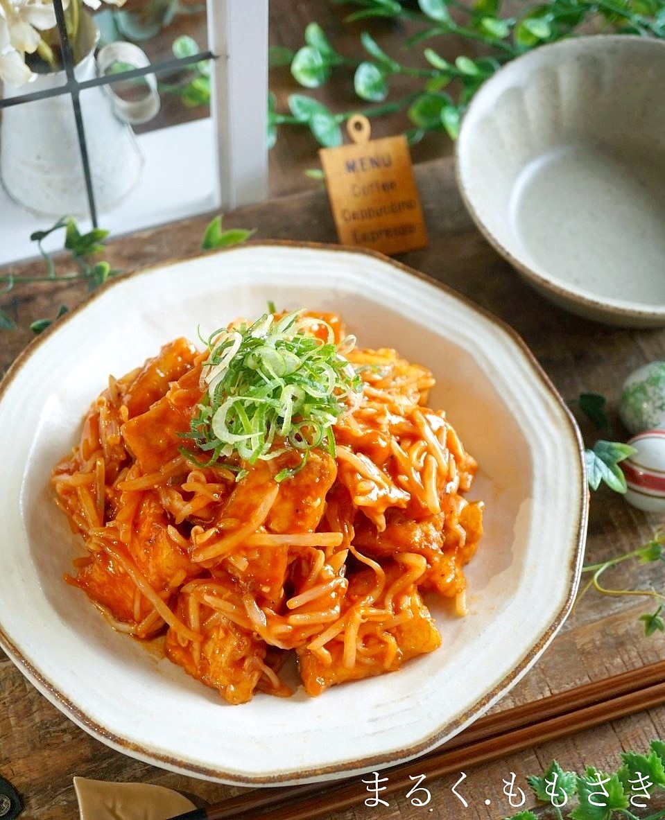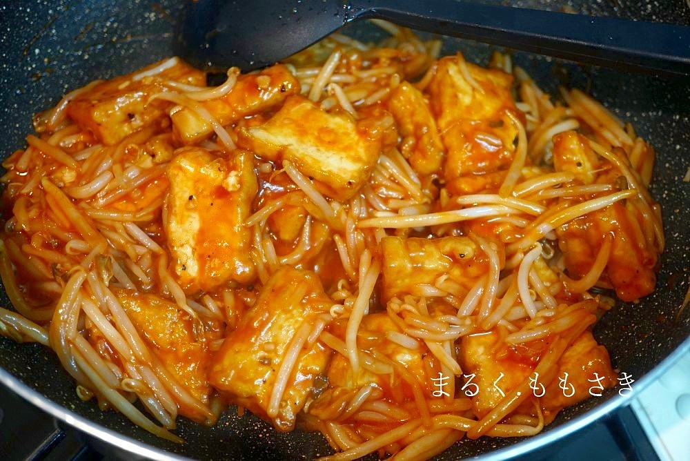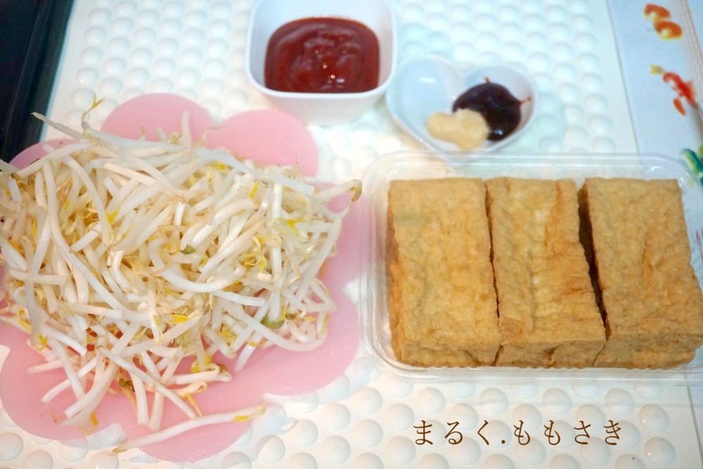 火曜市で1袋19円♪厚揚げは木綿揚げが好きでおでんに入れる予定を1袋使い忘れていたので、こちらを使いました。ニンニクで炒めた厚揚げともやし、ケチャップとコチュジャンを入れ仕上げにごま油を数滴たらせば完成です^^厚揚げに片栗粉をまぶし焼くことでソースにとろみが出ます^^ご飯が進む~