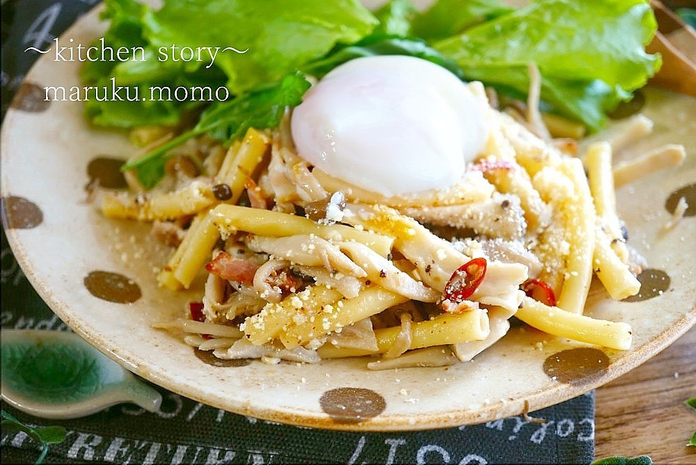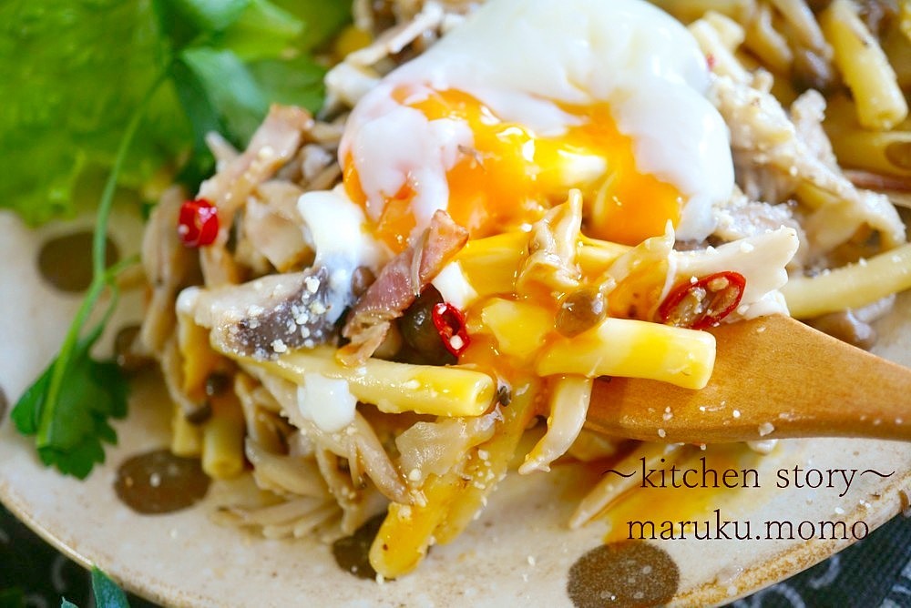 へ~、なんだか和風キノコカルボナーラショートパスタ(^-^;