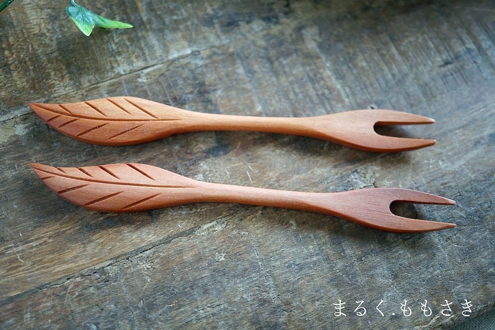 あの木の葉型の持ち手のフォーク可愛いね。