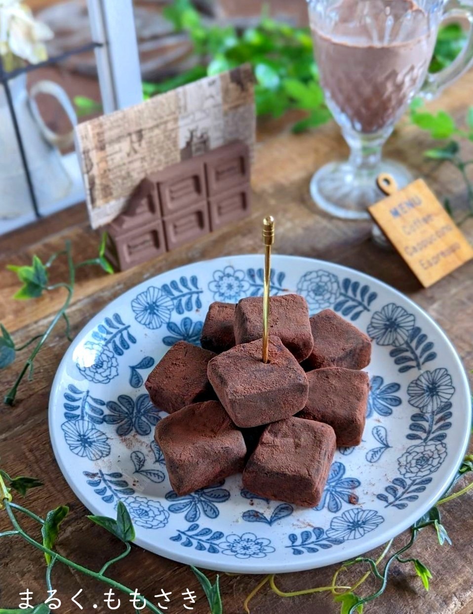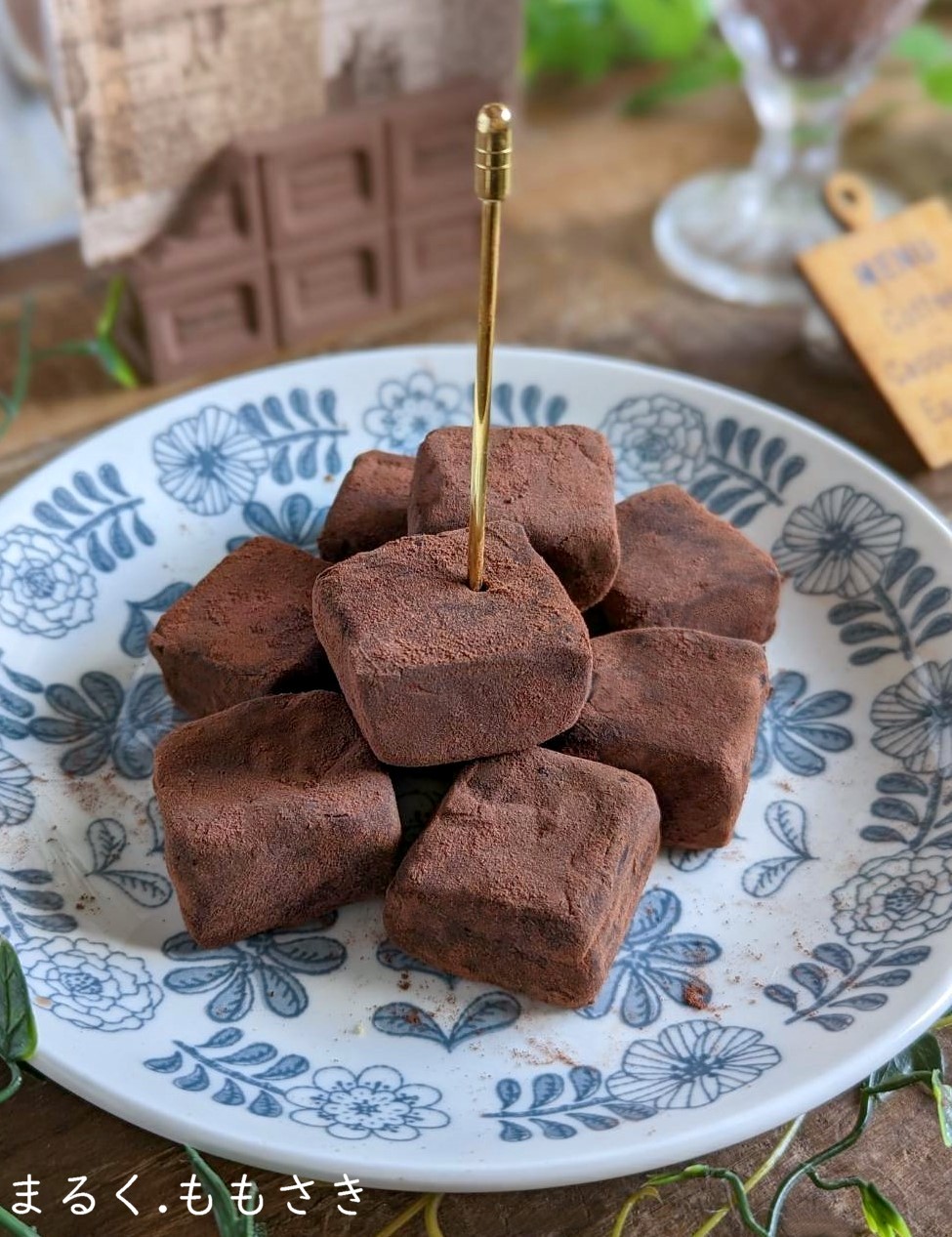 バレンタインも近い~と言うことでこちらはレンジで簡単に作れる生チョコです。