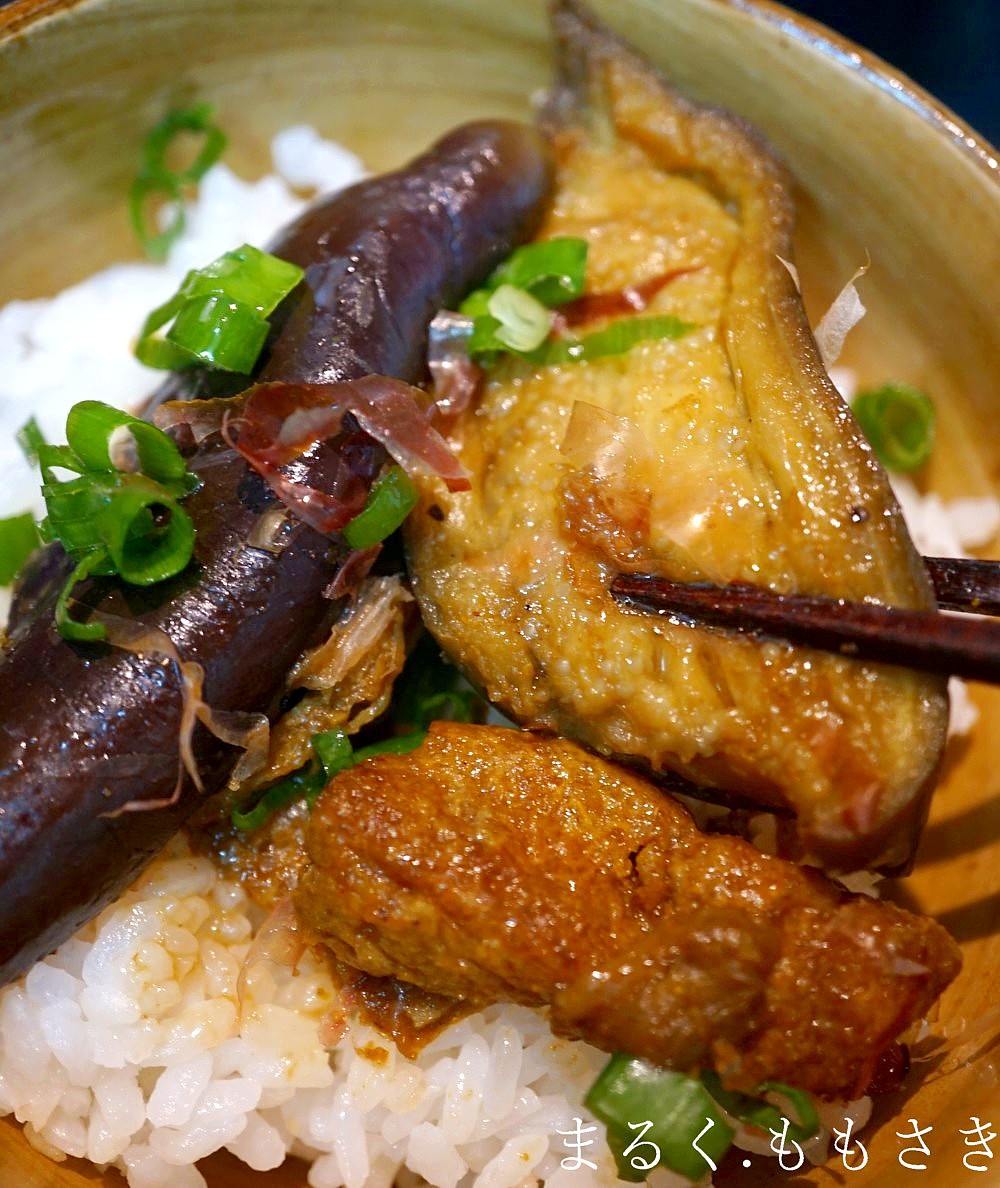 ナスと油揚げ……そして焼肉のタレとカレー粉か~~