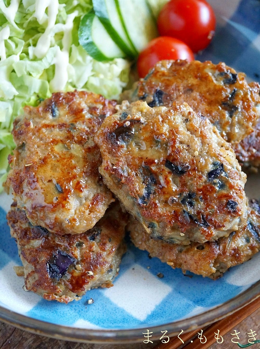 お茄子をたっぷり入れたハンバーグ。食べるとふんわり~柔らかくとってもジューシーです♪