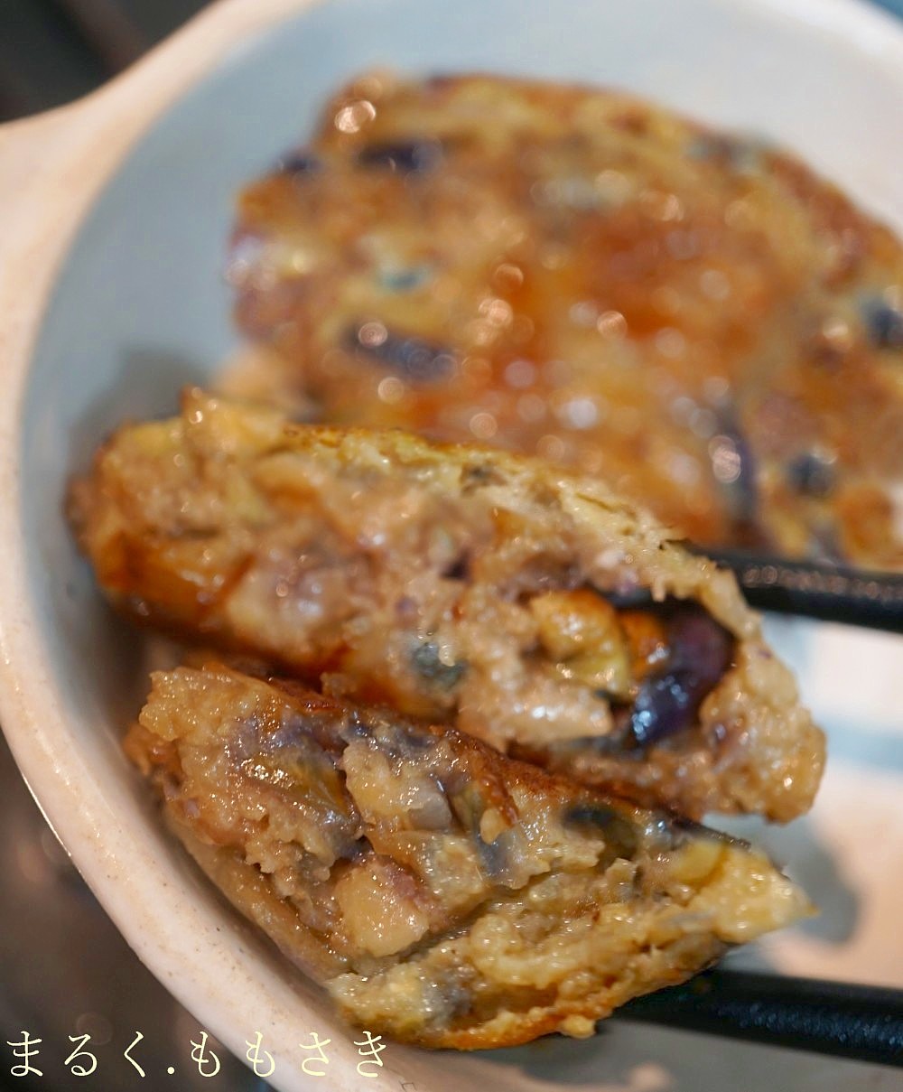先日、洗濯物を干しながらテレビで『高級なお店でお茄子を買うとお肉みたいなのよ。』ってタレントさんが言っていたのを耳で聞いていたら、ふとお茄子とひき肉を合わせ焼いたらそれこそ、お茄子がお肉かも?と頭に浮かんだので昨日作ったら、とっても柔らかく家族もお気に入りに一気になりました