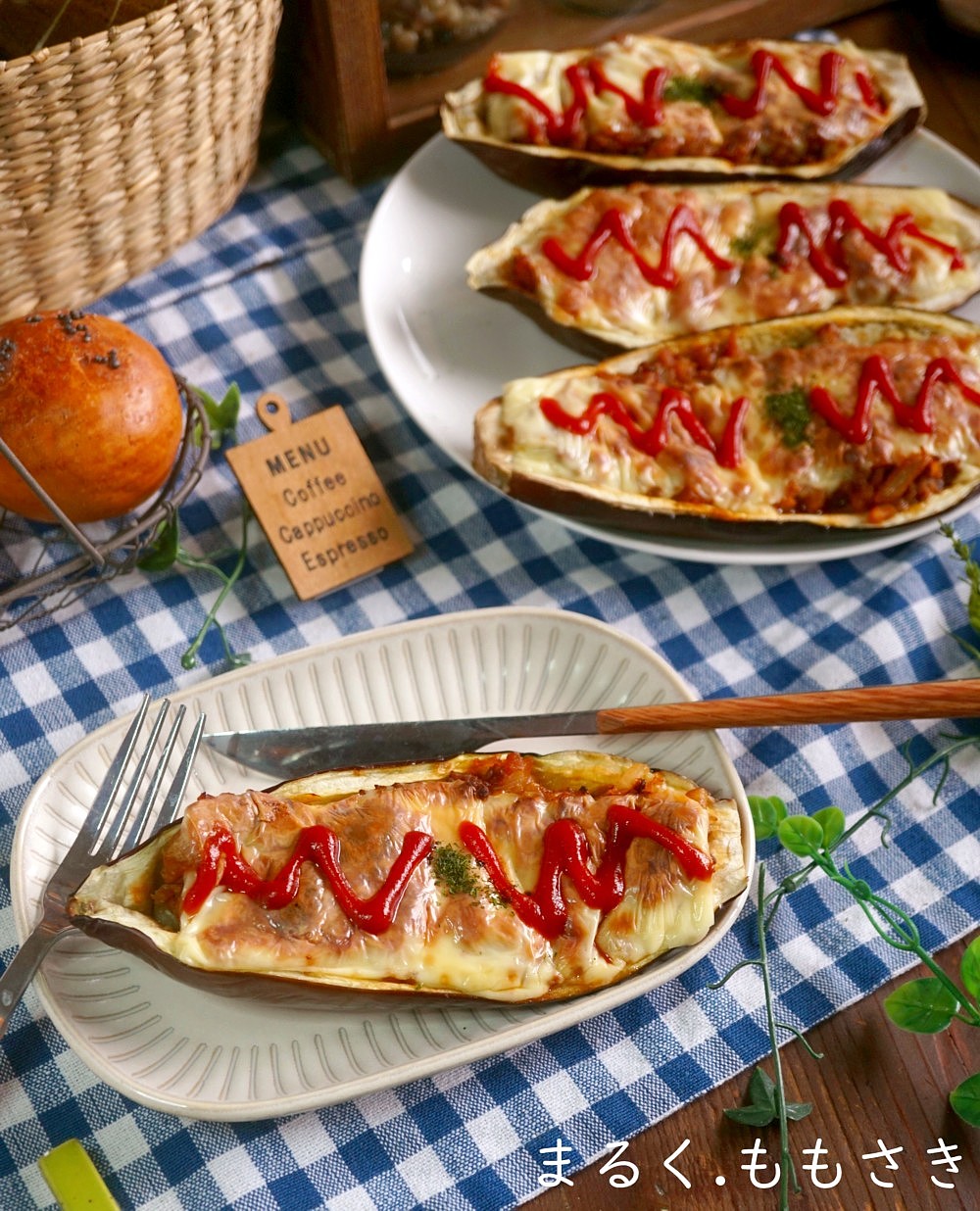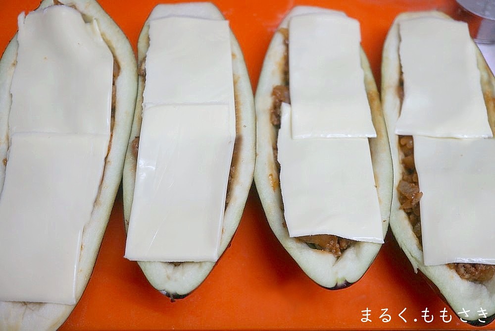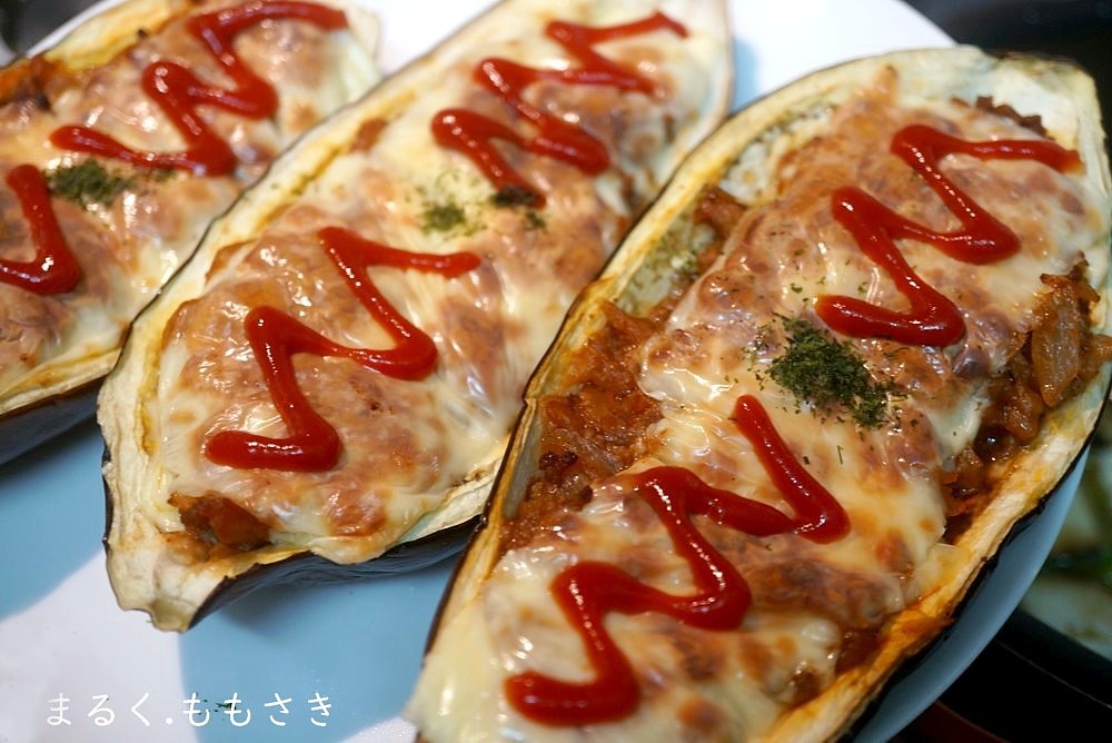 丸ごと茄子のミートグラタン風