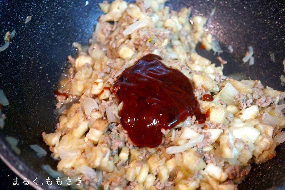 パスタソースで和えると簡単だなと思ったんですがストックが無く、ケチャップとトンカツソースを合わせたのを混ぜるとミートソースポイ味になりました^^